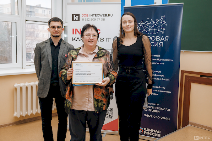 По завершении мероприятия заместитель директора Уральского филиала по научной работе Лариса Юрьевна Овсяницкая вручила благодарственные письма спикерам и организаторам. Это знак признательности Финансового университета за их весомый вклад в развитие цифровой грамотности и поддержку талантливой молодежи.