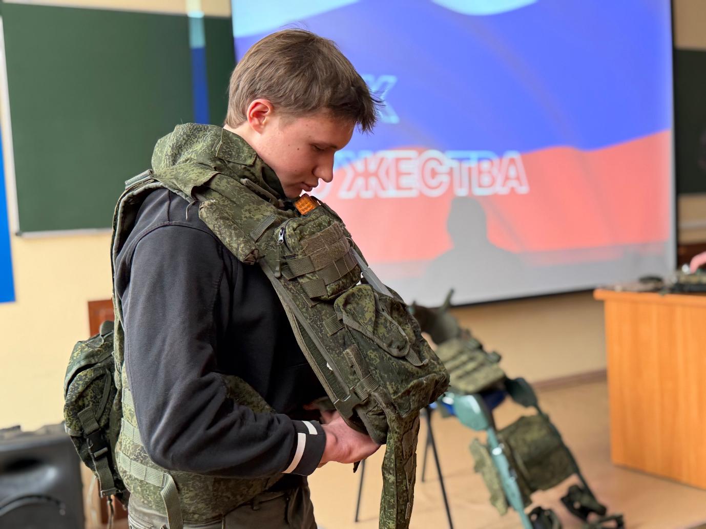 Особый интерес вызвала демонстрация военной амуниции: все желающие не только рассмотрели снаряжение, но и примерили его на себя.