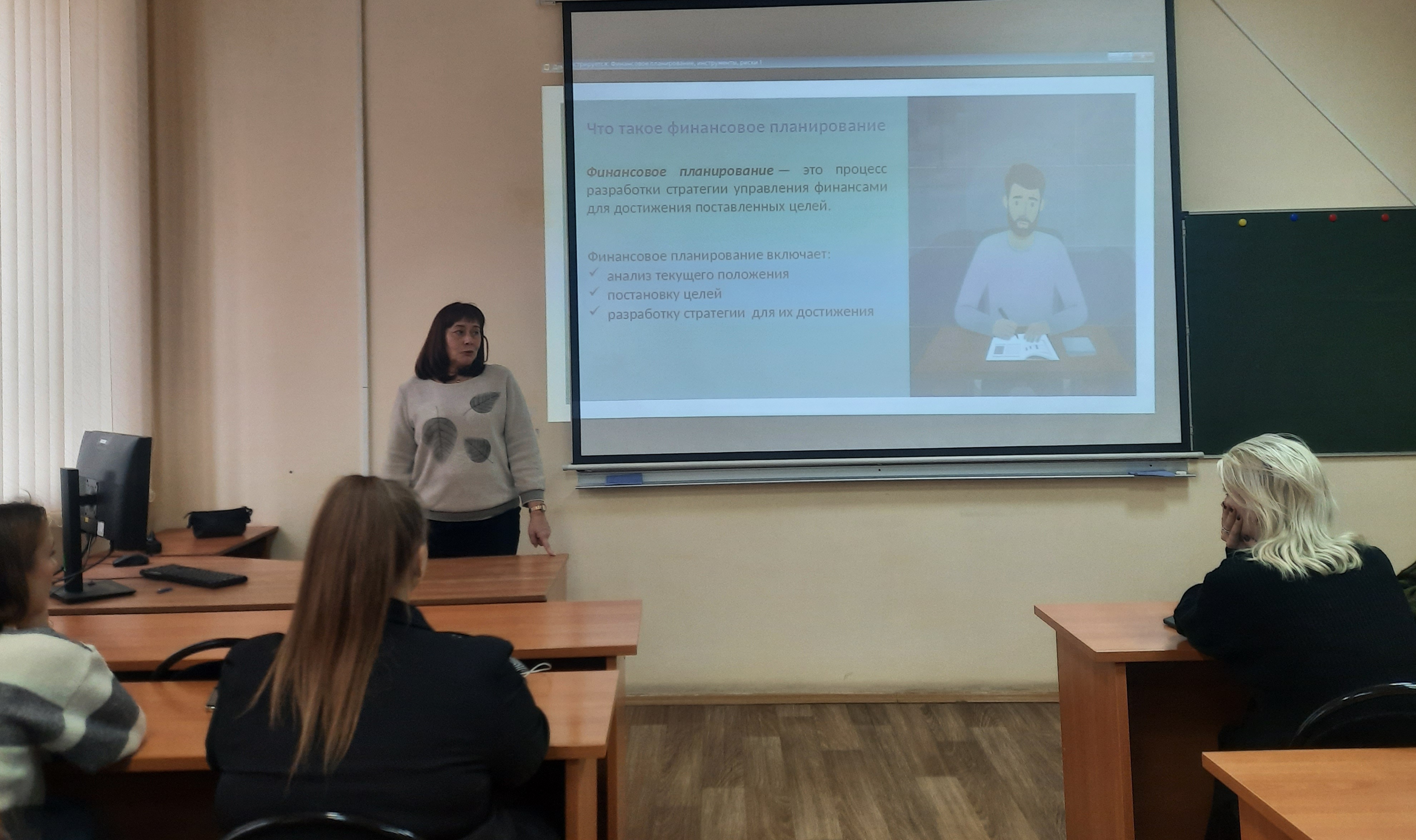 Во время занятия студенты познакомились с понятием и элементами финансового планирования и бюджетирования. В ходе дискуссии ответили на вопрос о цели бюджетирования. Затем студенты узнали о понятии и этапах финансового моделирования и на конкретном примере совместно преподавателем составили систему активов и пассивов. Рассмотрев основные методы инвестиционного анализа, студенты сделали вывод о необходимости данного анализа для успешности реализации предпринимательской деятельности. Активное обсуждение прошло при рассмотрении основных рисков в финансовом планировании, а также методов управления рисками. В заключении участники совместно составили выводы по итогам занятия.